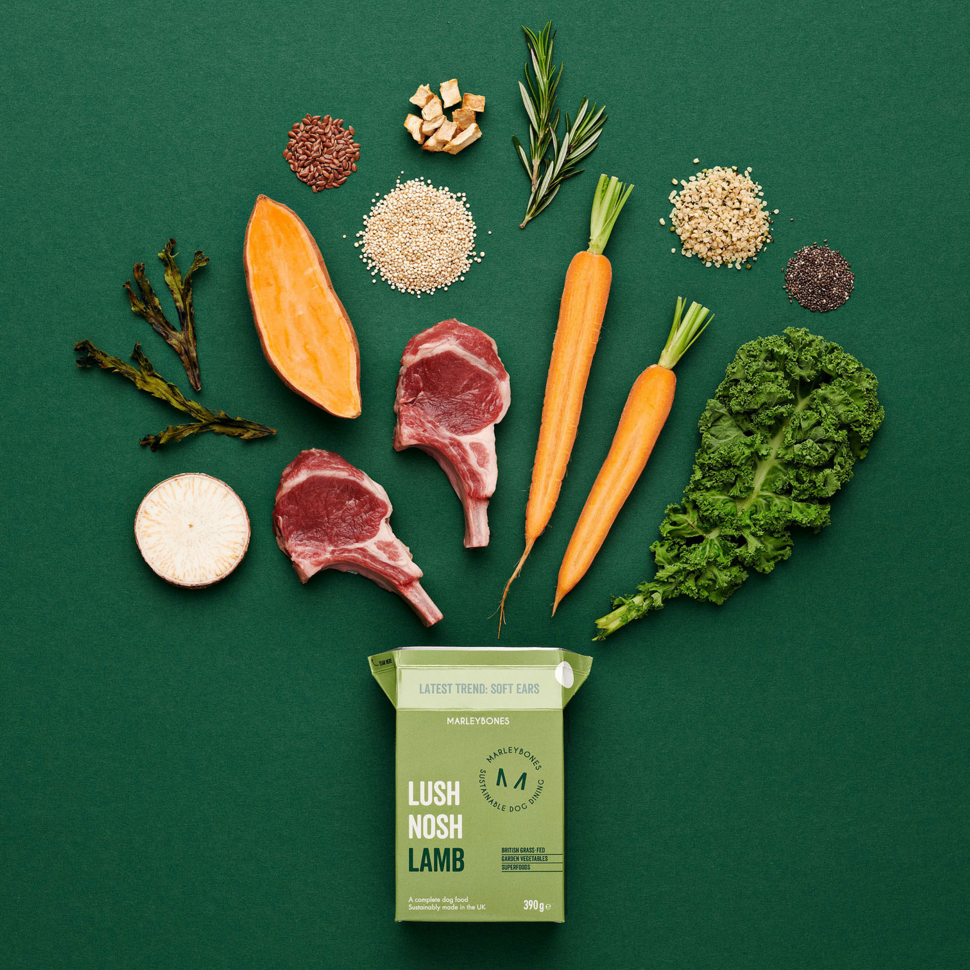 British lamb (60%), carrots (7%), quinoa (3%), kale, sweet potato, minerals, chia seeds, linseeds, hemp seeds, chicory root, rosemary, wild seaweed, yucca