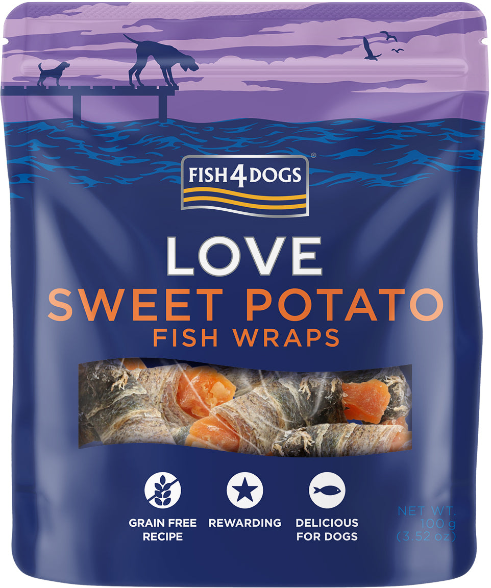 Our Sweet Potato Fish Wraps are part of our 'Love' treats range. The ‘Love’ category contains a range of deliciously different treats, that are great for owners who just want to show their dogs they are loved. Interesting, intriguing, different and delicious.