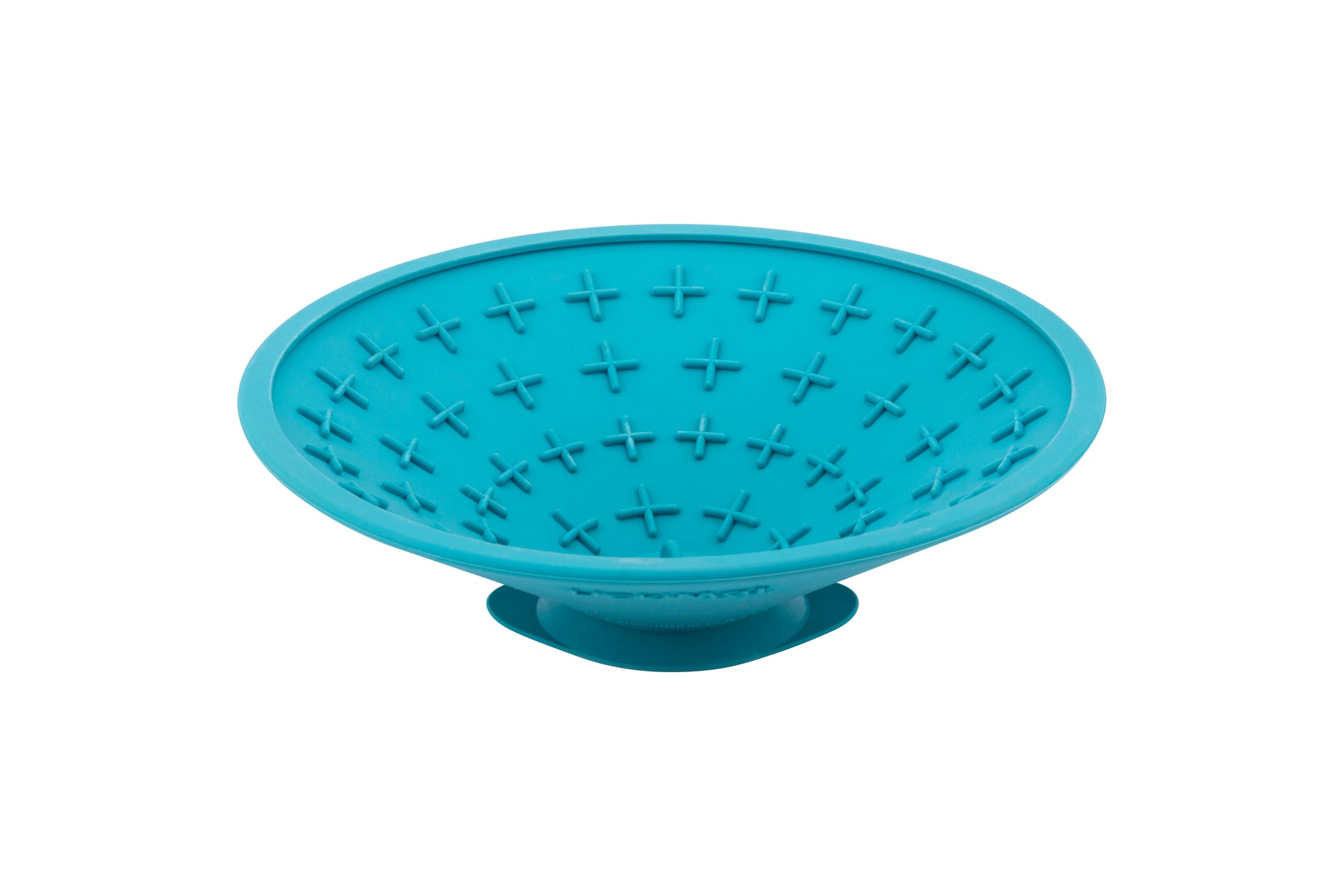The Lickimat Splash provides all the benefits of a Lickimat Buddy or Soother, but with the added benefit of a suction cap which can be stuck to your bathroom wall for pup to enjoy while standing upright, making bath time or even nail trimming a breeze!